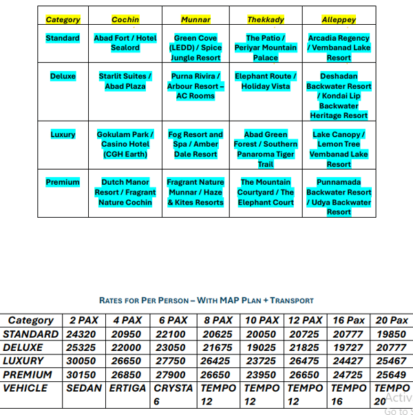 1 Night Cochin + 2 Nights Munnar + 1 Night Thekkady + 1 Night Alleppey