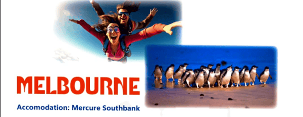 • Accommodation for 3 nights in Melbourne with Breakfast.